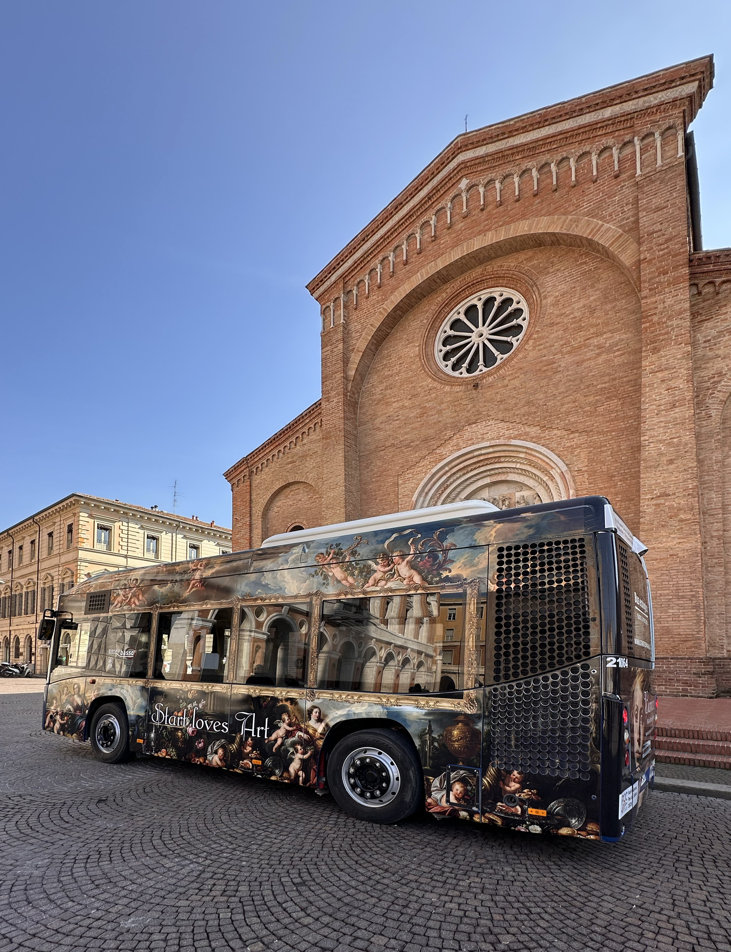 Per celebrare la mostra “Barocco. Il Gran Teatro delle Idee” ospitata al Museo Civico San Domenico di Forlì fino al 28 giugno 2026, Start Romagna gestore del trasporto pubblico locale su gomma nella cittadina romagnola ha oppurtanamente allestito l'autobus urbano matricola 21064, lungo otto metri.